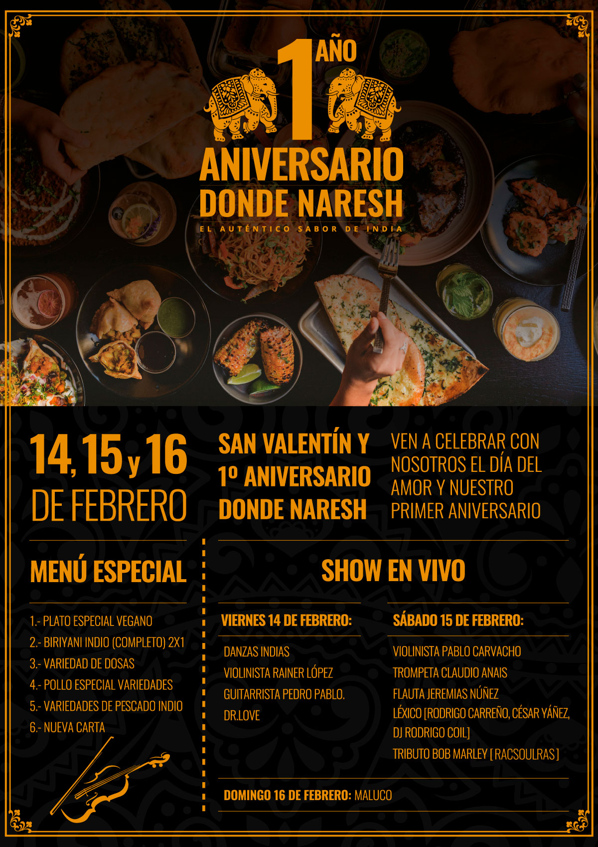 February 4, 2019 Brand development of a new Indian restaurant. I participated in the design of the place, logo, menus, website, flyers and social media. dondenaresh.cl/ Prev Next